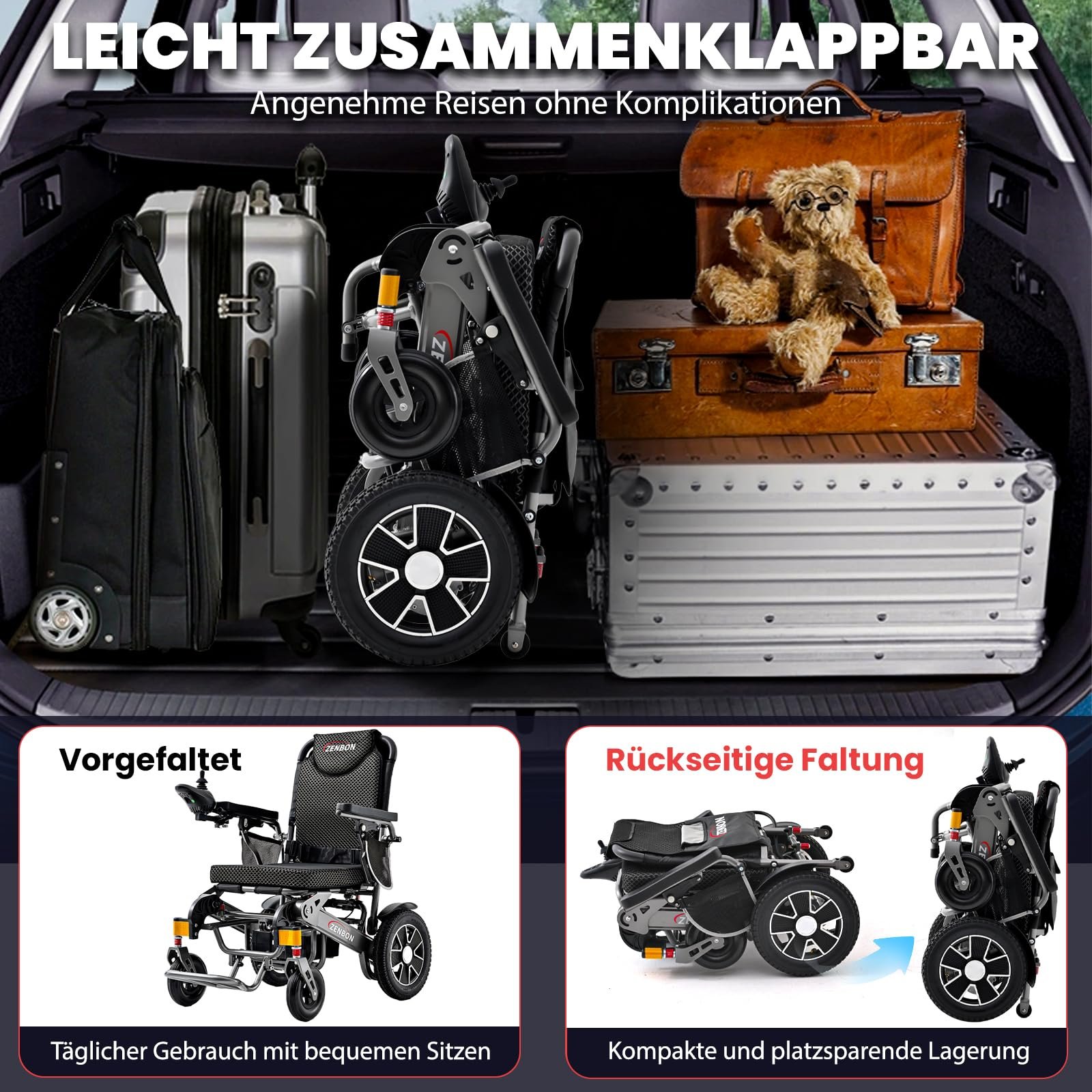 ZENBON ZBLY626 Elektrorollstuhl Auto‑Faltfunktion, 700W, 20Ah Lithium, bis 30 km, bis 6 km/h, Steigung bis 12°, elektromagn. Bremse, Silber/Schwarz