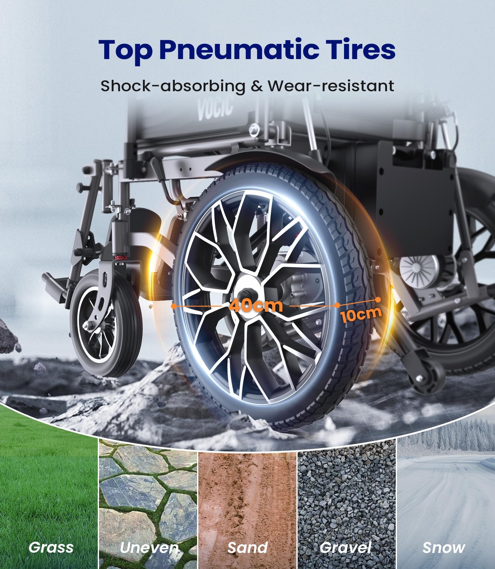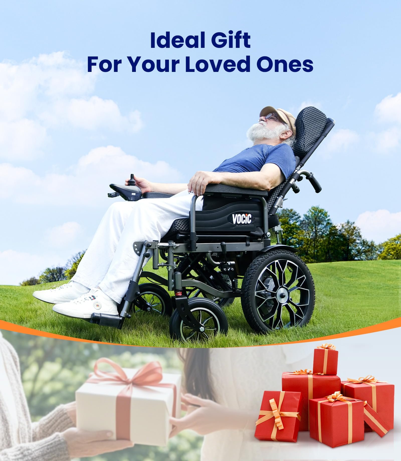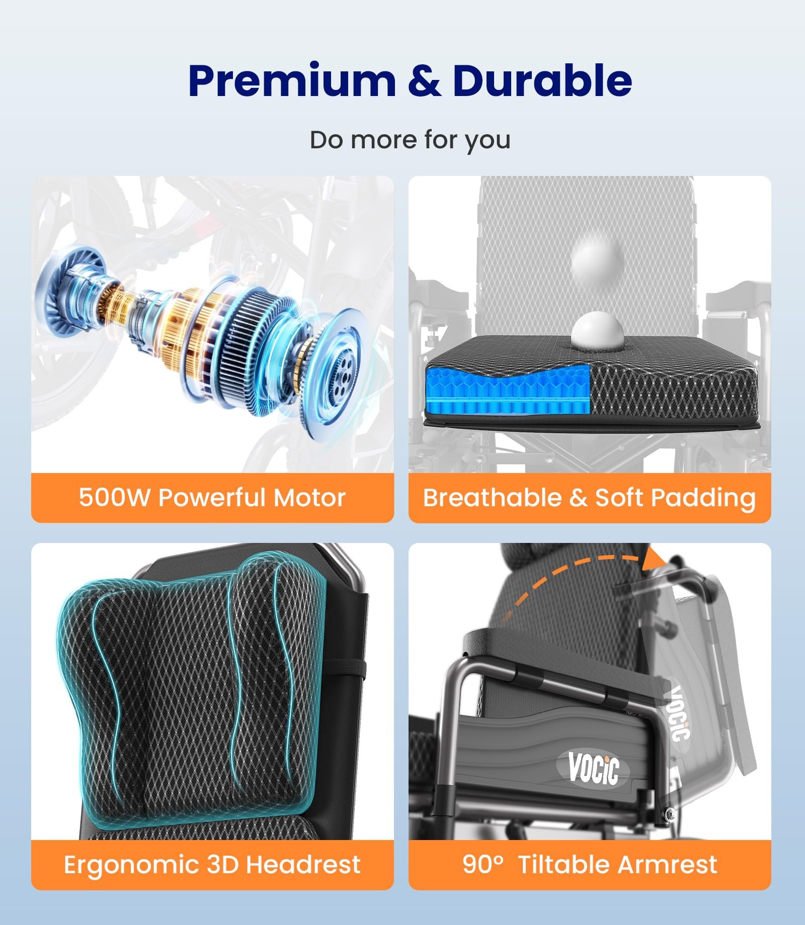 VOCIC V57 Elektrorollstuhl faltbar & leicht, Rückenlehne 165° verstellbar/abnehmbar, 500W, 24V/20Ah, bis 30 km, bis 150 kg, Mondlichtgrau